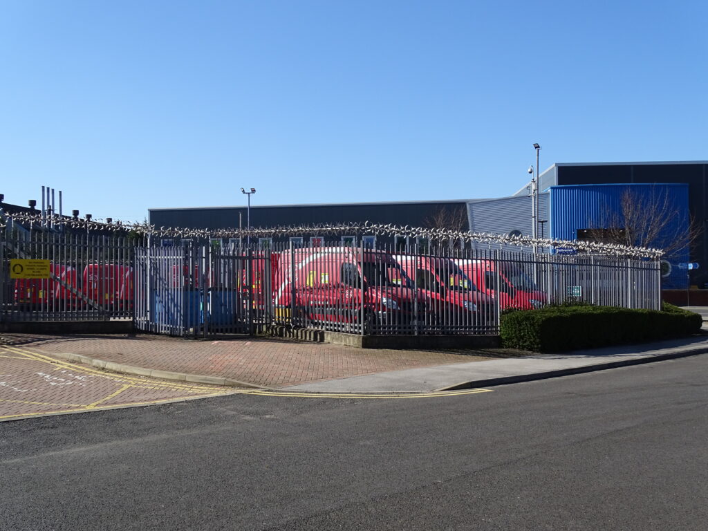 If it weren’t for the big red trucks you’d miss this decidedly unlisted Royal Mail warehouse. You can be reasonably sure they’re not carrying your post.
